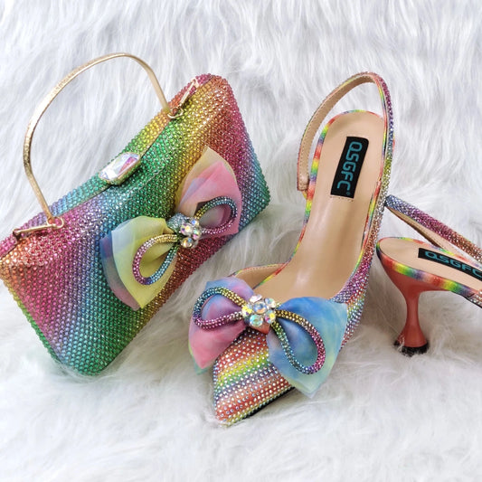 INS Style Rhinestone Bow Heels And Bags