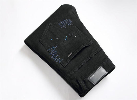 Men's Hole Patch Black Stretch Slim-fitting Jeans