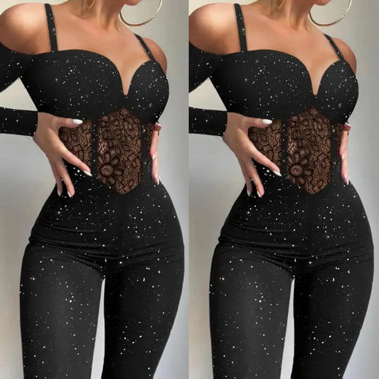 Contrast Lace Trim Spaghetti Strap Split Night Gown