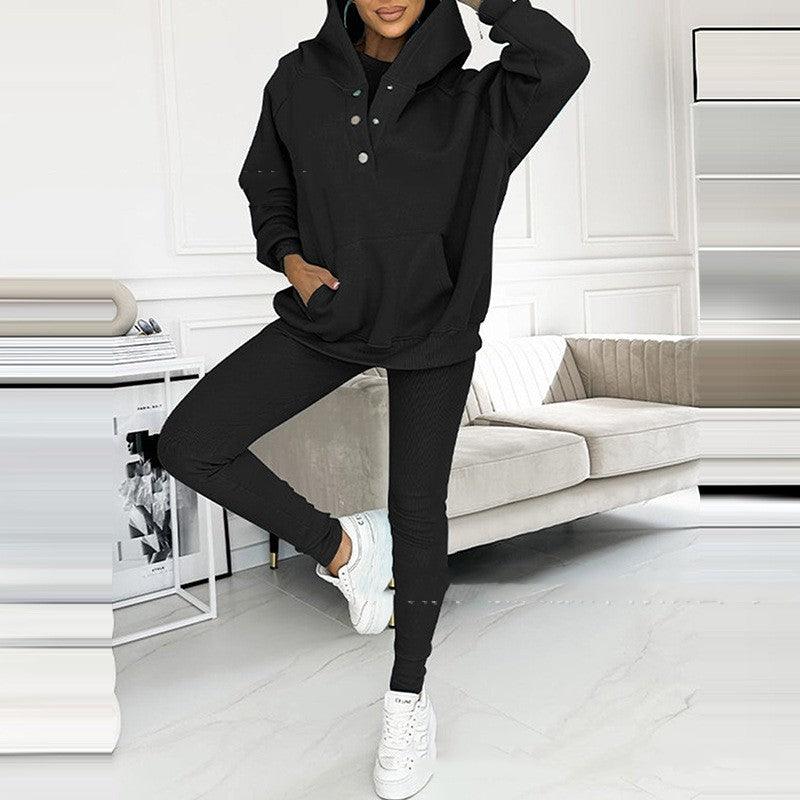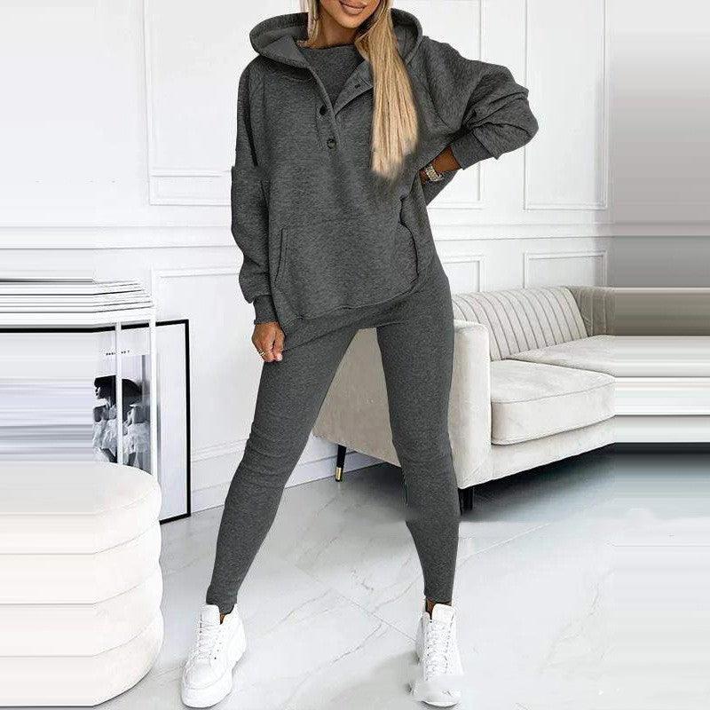 3pcs Women's Sports Loose Hooded Sweatshirt ,Vest And Slim Trousers
