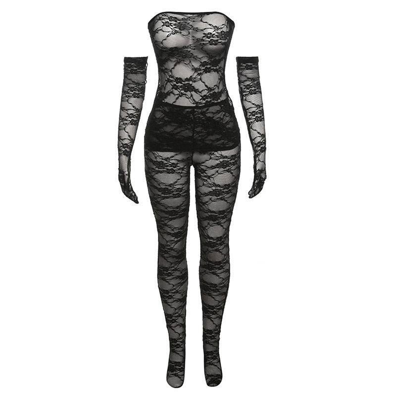 Women's Fashion Lace Tube Top High Waist Tight Body Stocking Long Pants Suit