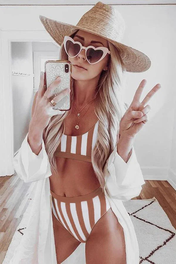 Striped Tank High Waist Bikini